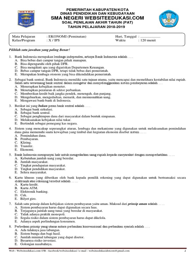 soal pat ekonomi kelas 10 semester 2. Sebagai proses penilaian, hasil atau nilai yang diperoleh melalui penilaian akhir tahun (pat) dijadikan sebagai salah satu unsur yang menentukan kenaikan kelas. soal uas matematika kelas 10 sma semester 2 dan kunci jawaban soal pas & Jawaban pat ekonomi kelas 10 k13 tahun 2021. Bpr menerima simpanan tabungan b.